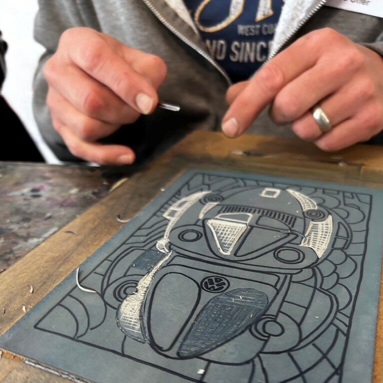 - Participants will begin carving their own lino block and preparing for the first colour layer