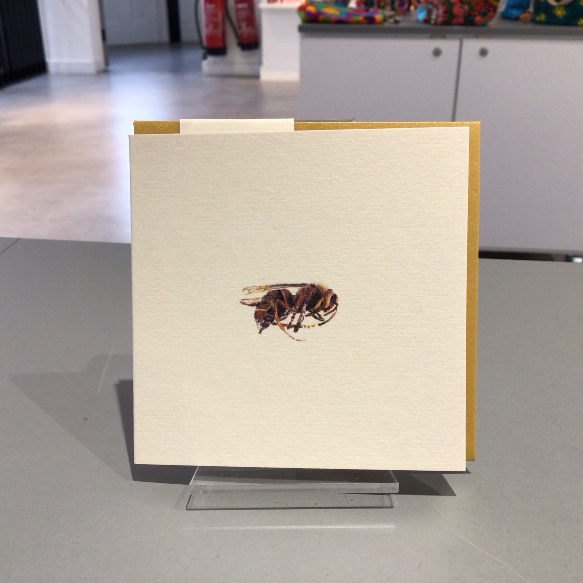 9.5 x 9.5cm illustrated card with gold envelope by Gemma Ince.