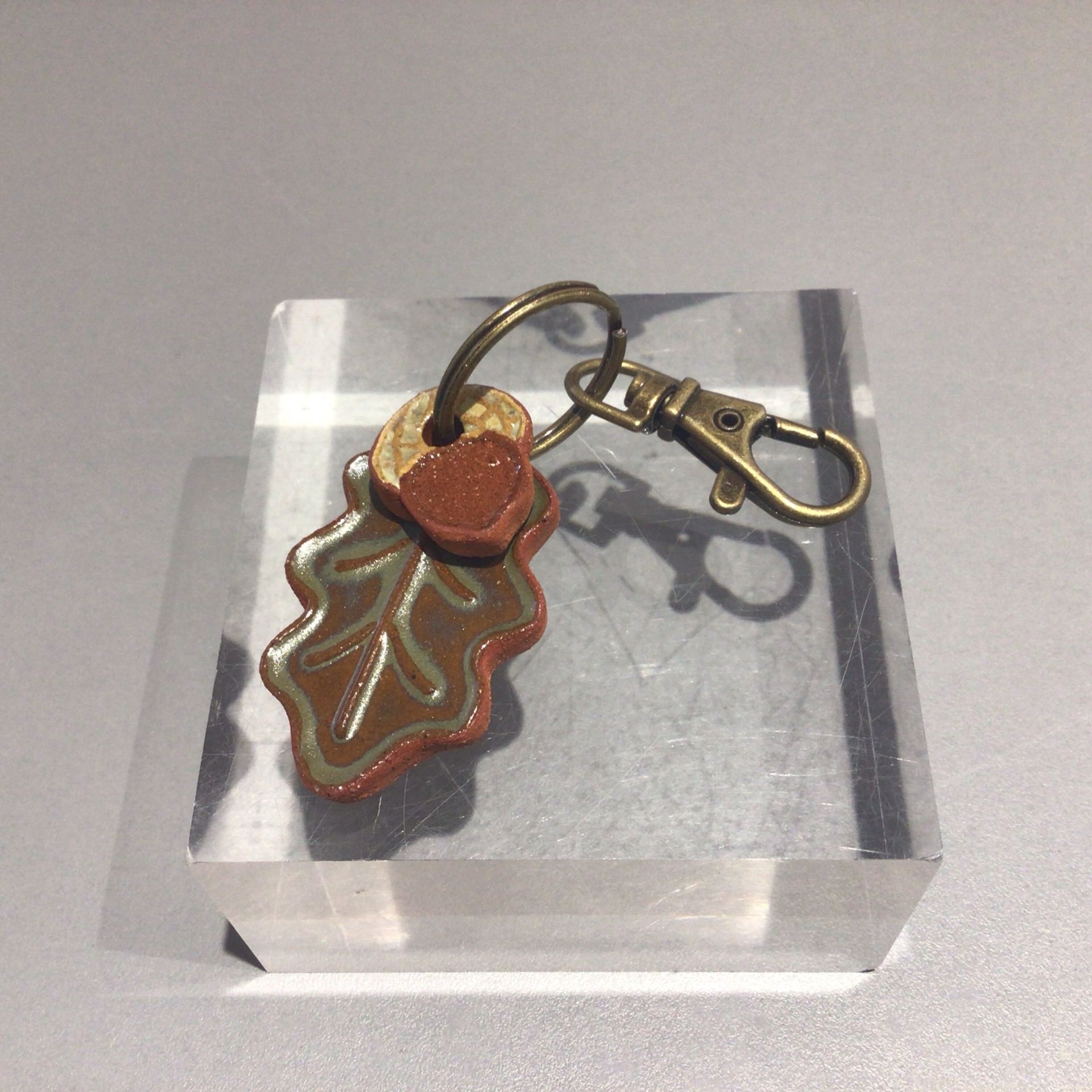 Glazed Terracotta Ceramic Oak Leaf and Acorn Bag Charm by Automaton Ceramics.
