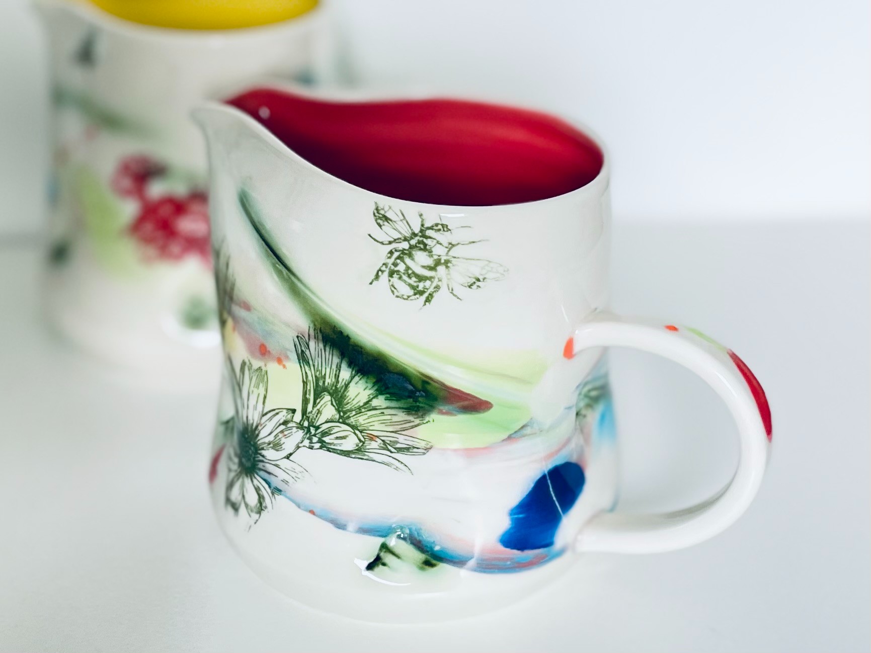 Hand-thrown glazed porcelain cream jug by Helen Harrison.