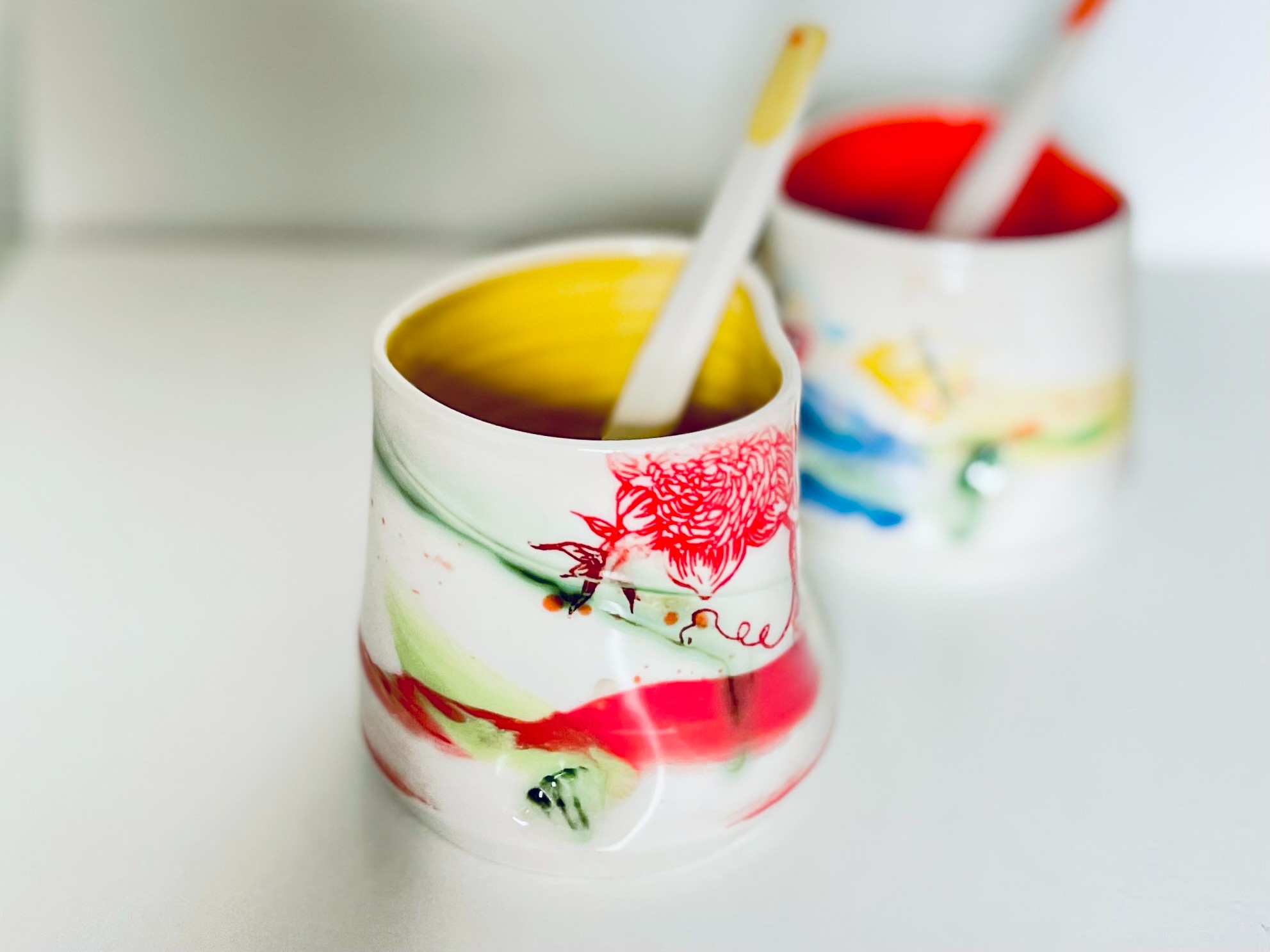 Hand-thrown glazed porcelain heart dish and spoon by Helen Harrison.