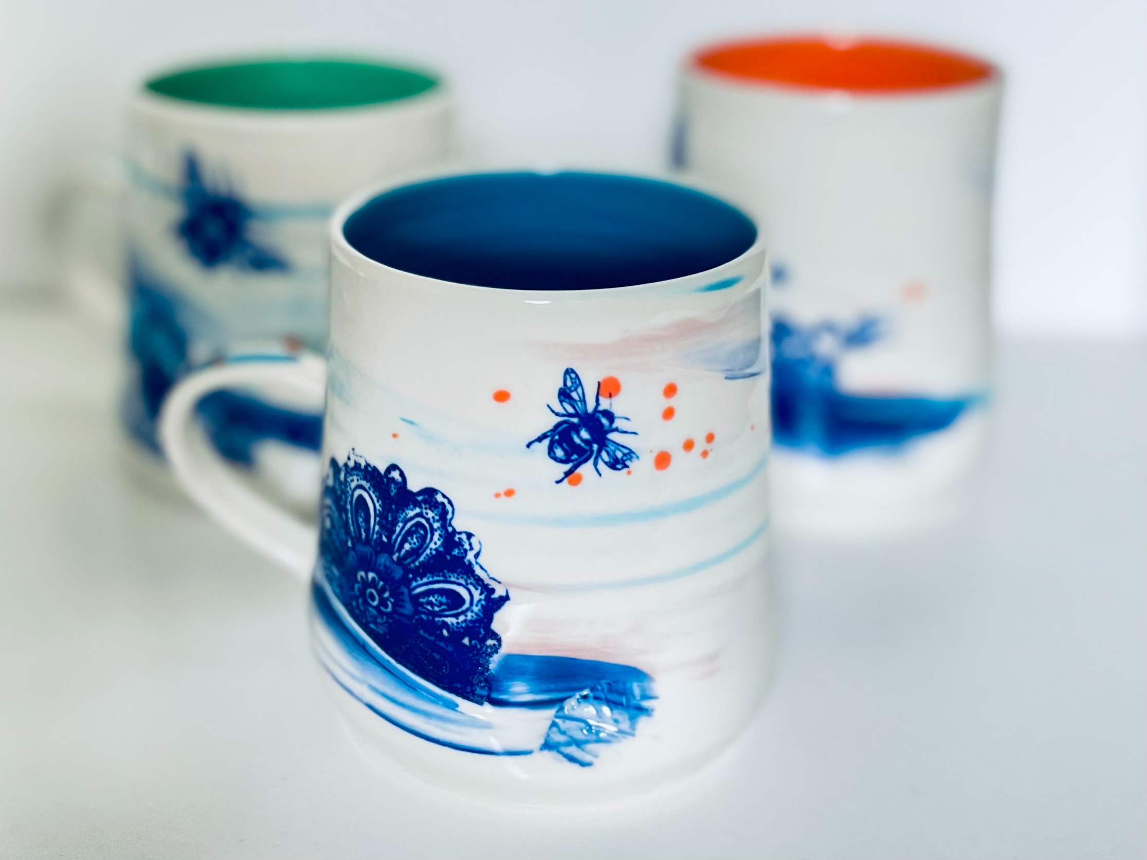 Hand-thrown glazed porcelain mug by Helen Harrison.