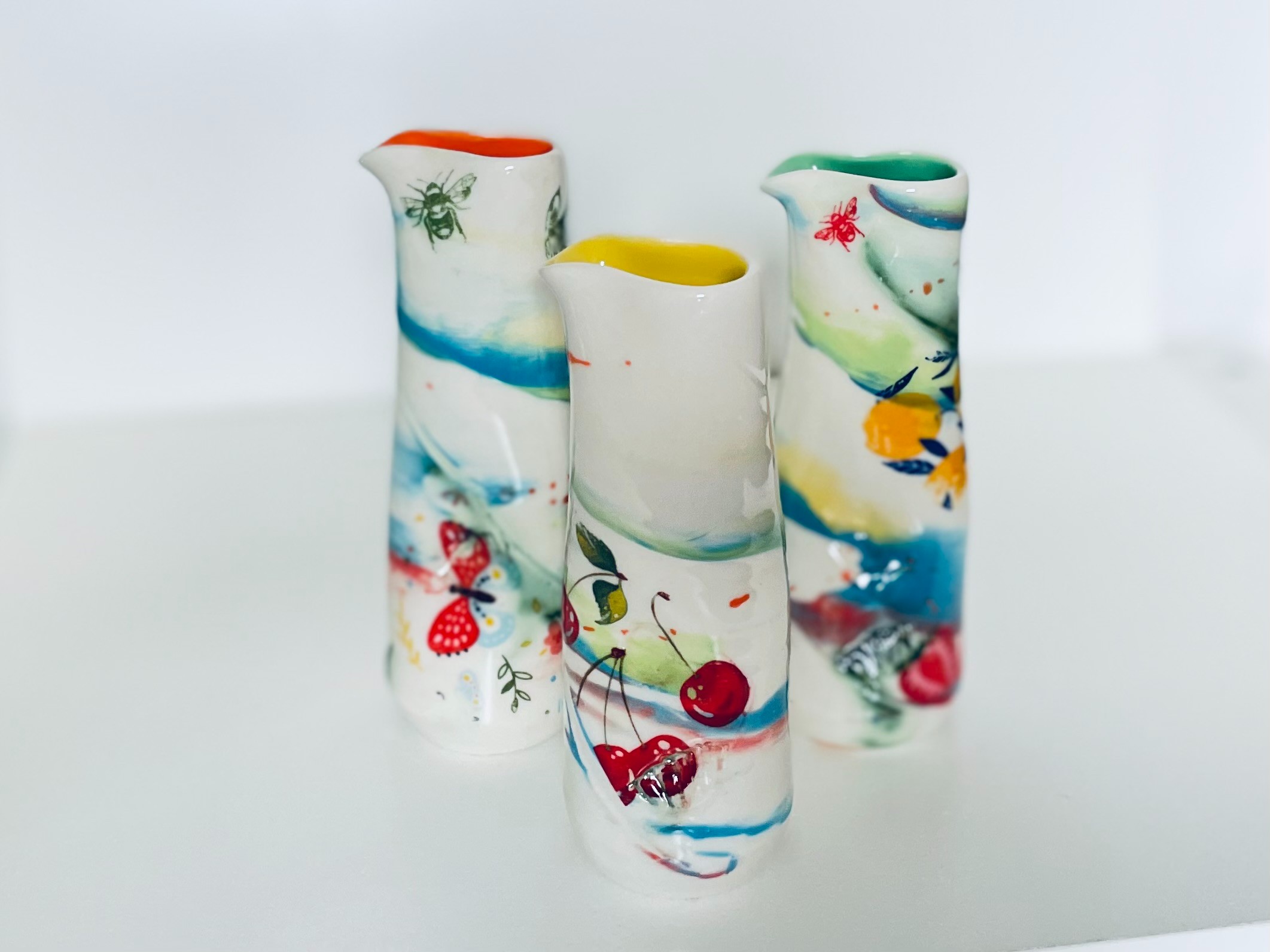 Hand-thrown glazed porcelain tall pourer by Helen Harrison.