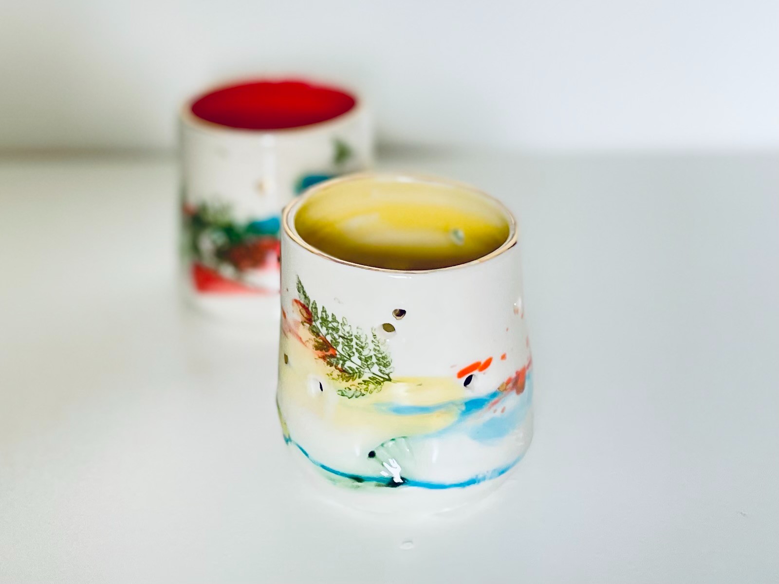 Hand-thrown glazed porcelain tea light by Helen Harrison.