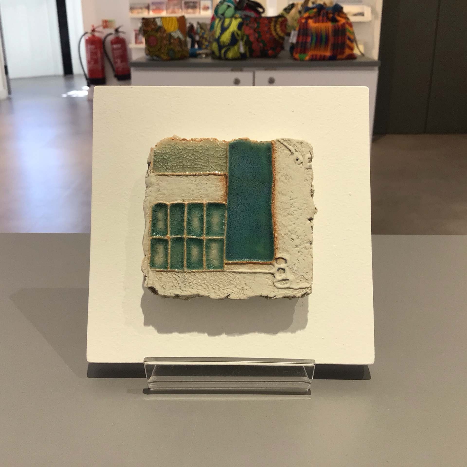 Glazed stoneware mounted on painted MDF surround signed by Melanie Keevil.