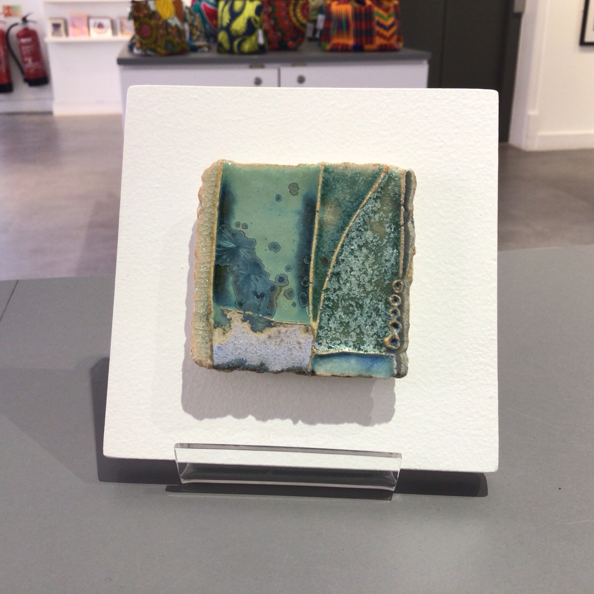Glazed stoneware mounted on painted MDF surround signed by Melanie Keevil.
