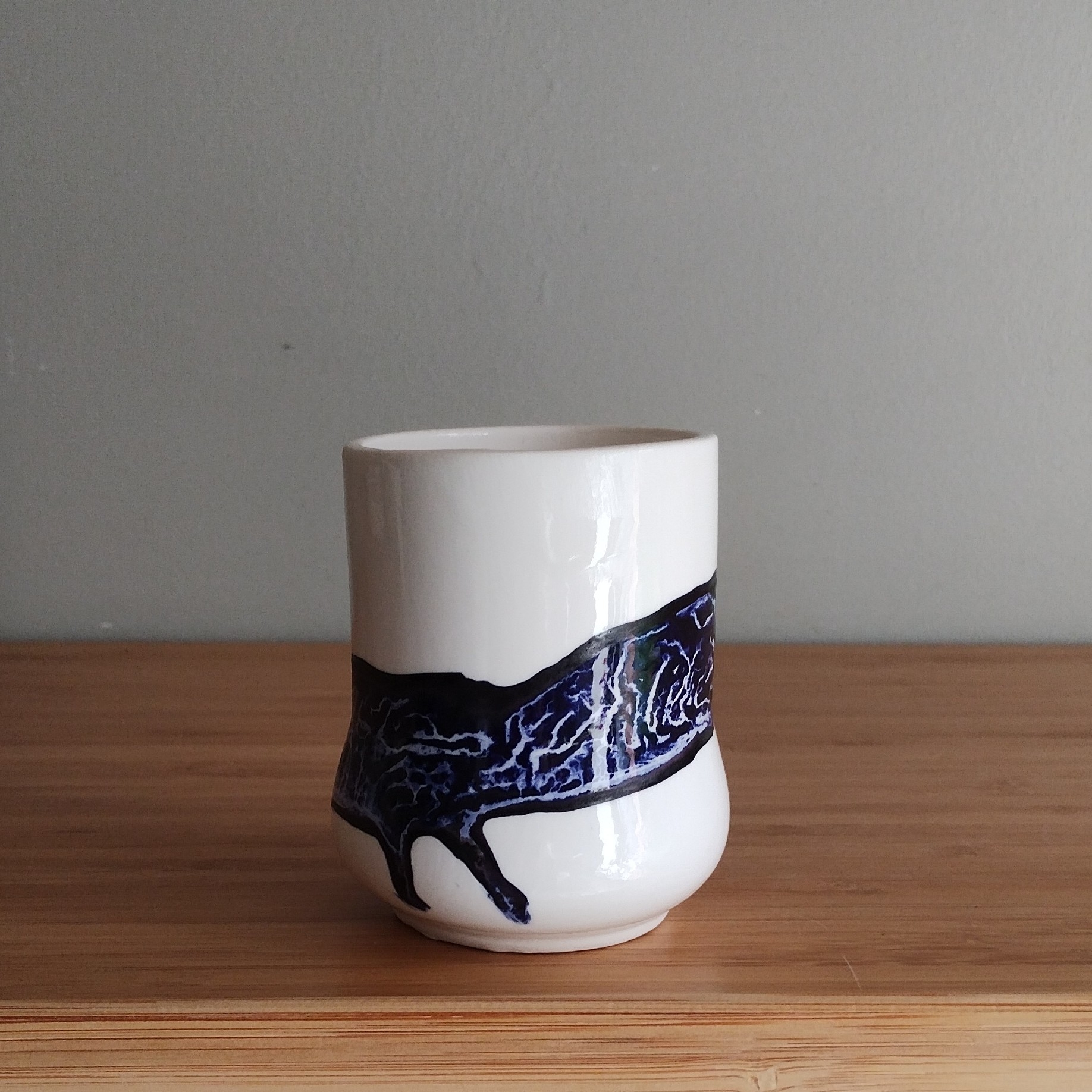 Fine bone china with transparent glaze and cobalt oxide by Wendy Tournay Ceramics.