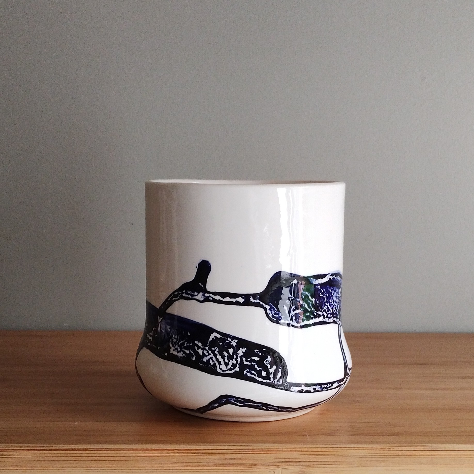 Fine bone china with transparent glaze and cobalt oxide by Wendy Tournay Ceramics.