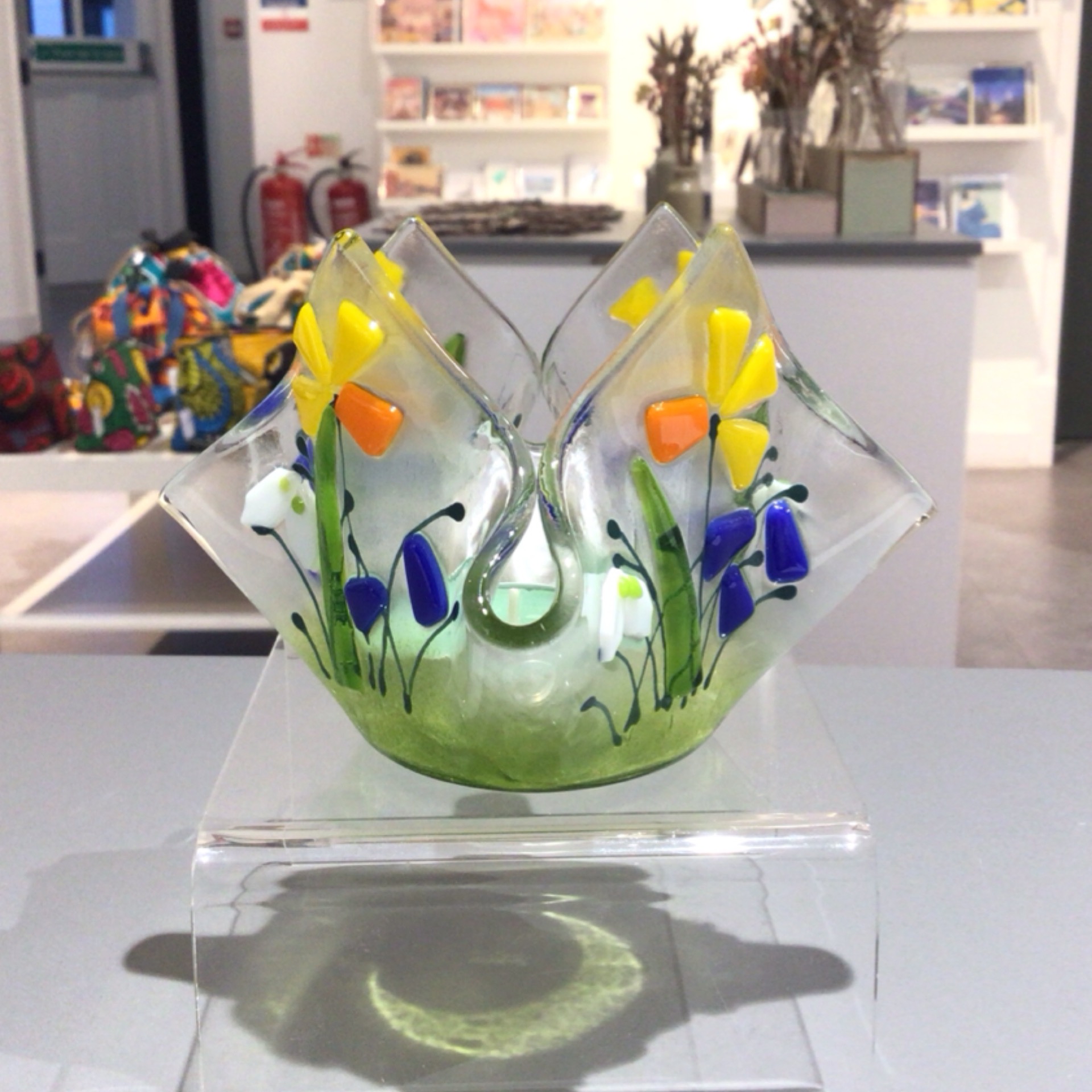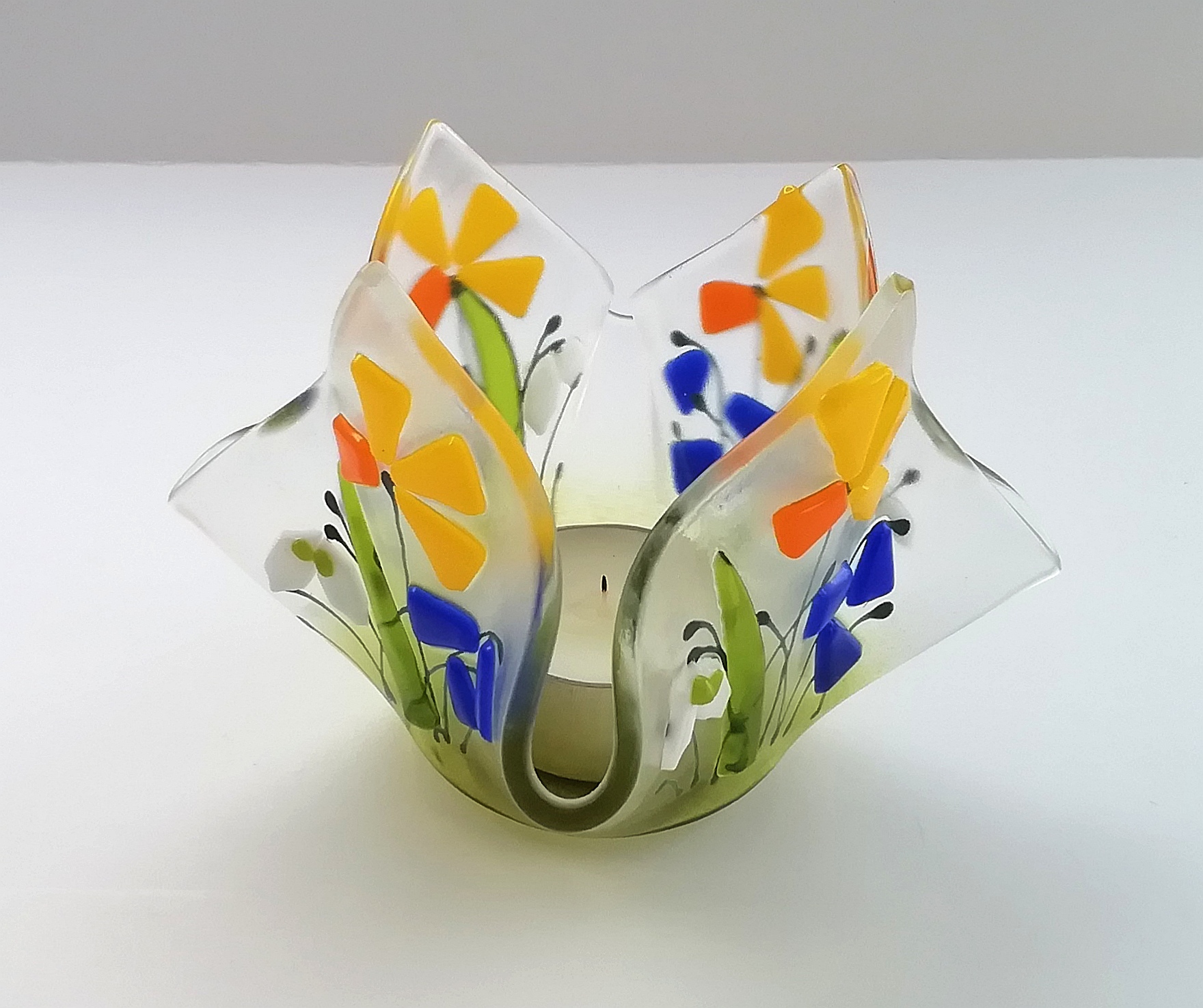 Fused glass spring tea-light holder with tea-light by WhimsicalFusing.