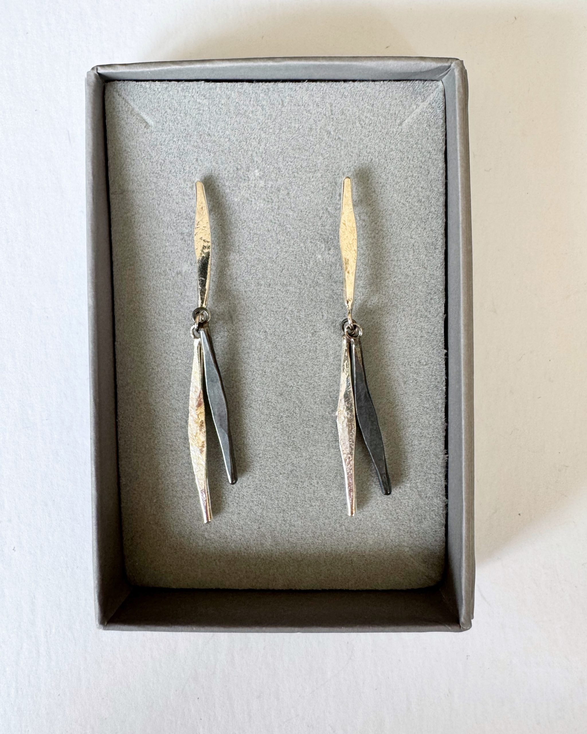 Long Double Wave Drop Studs with Oxidisation