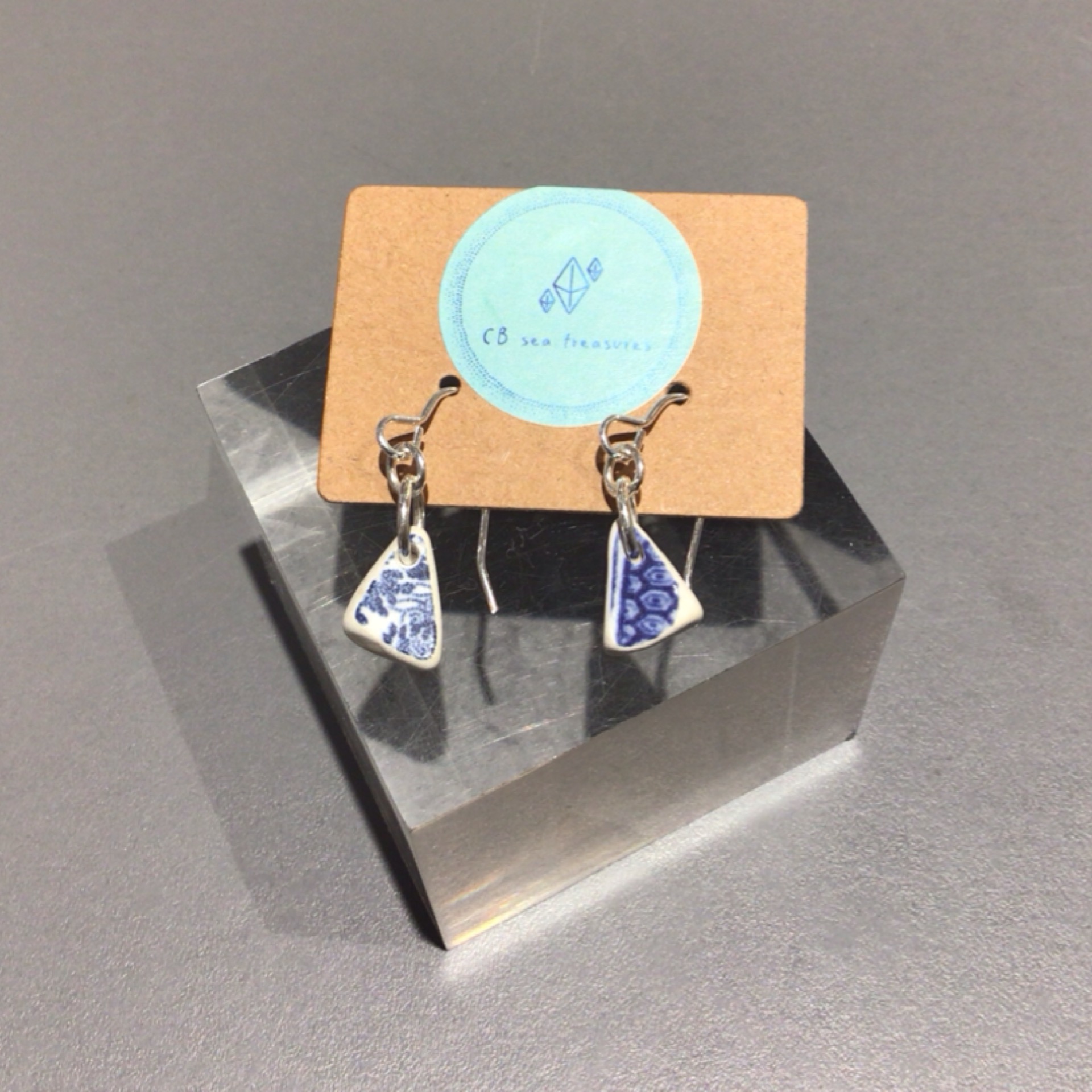 925 Silver Dangle Hook Earrings with Sea Glass by CB Sea Treasures.