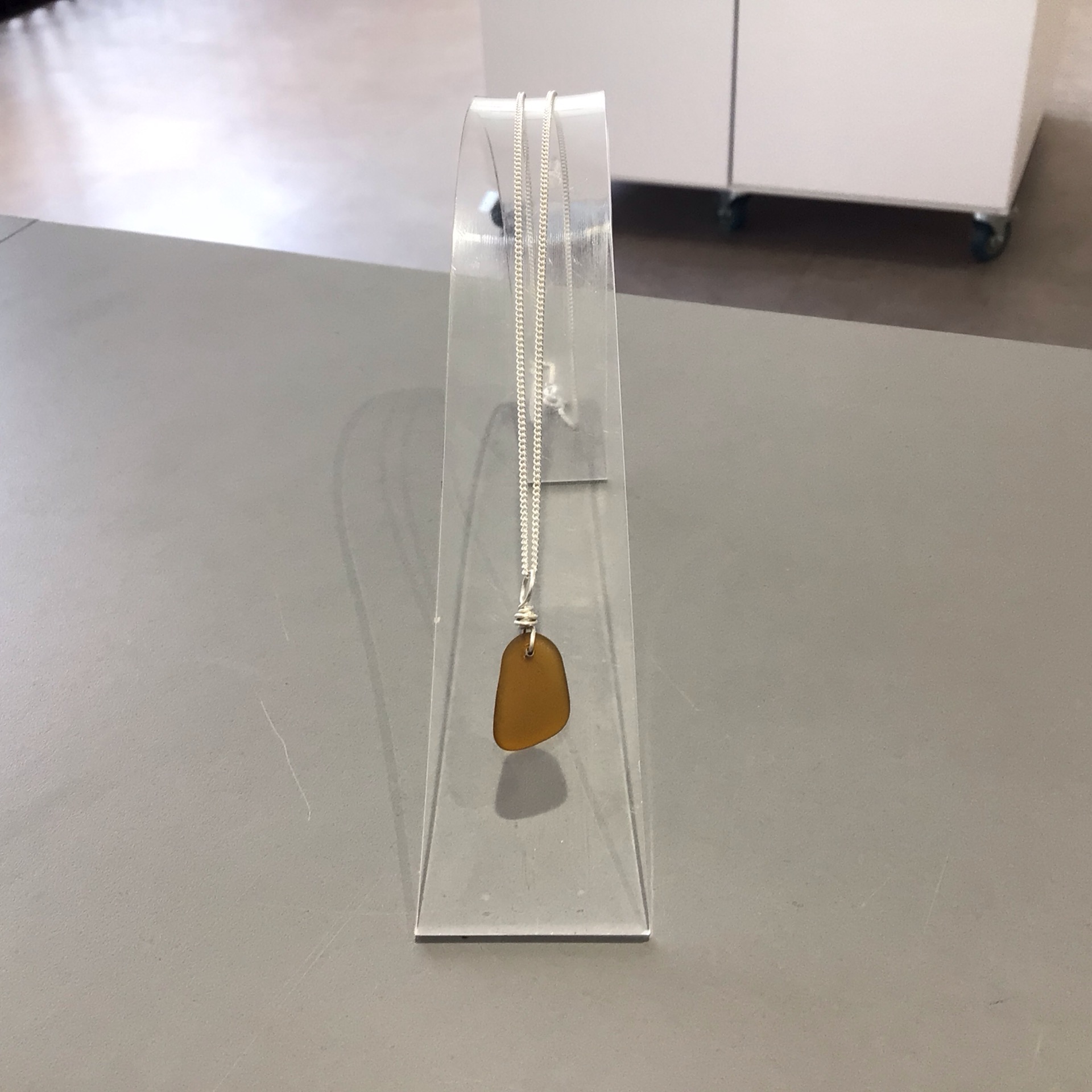 Sea Glass Pendant and Recycled Sterling Silver Wire on a 925 Silver 20” Chain by CB Sea Treasures.