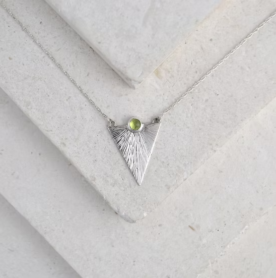 / Triangle Sunbeam Pendant – Silver & Peridot