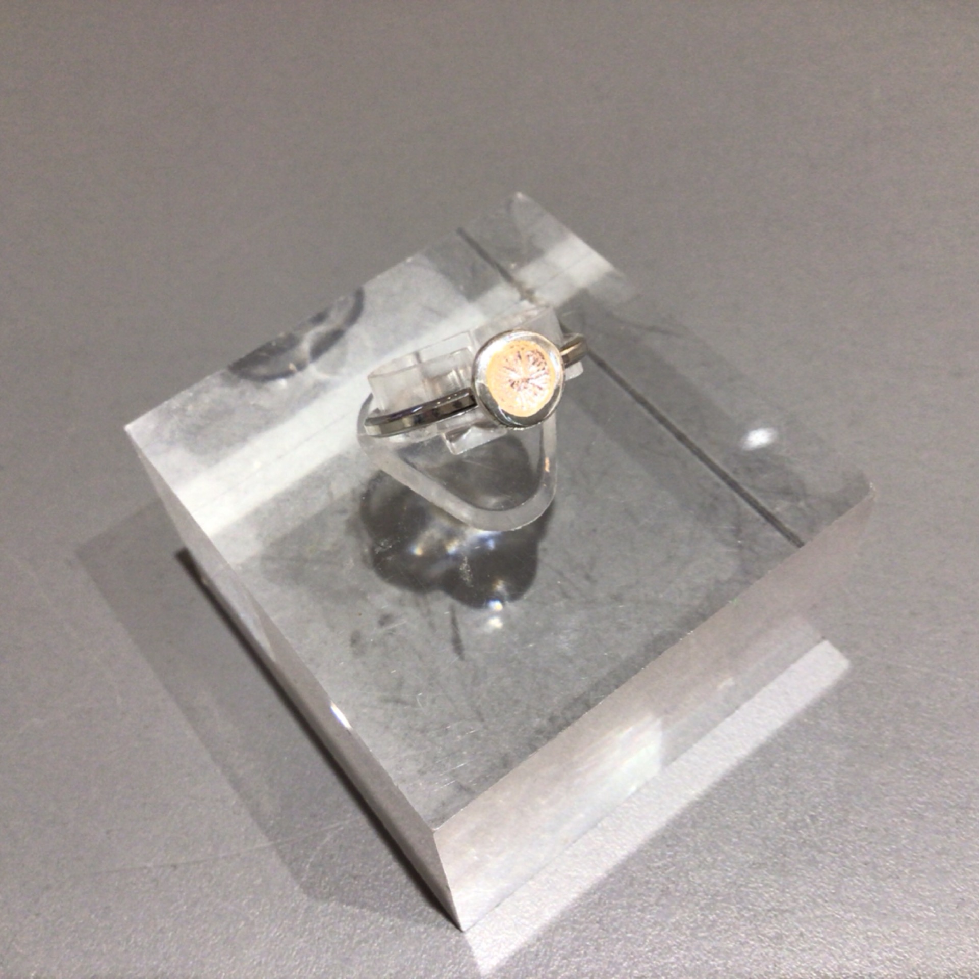 Engraved 999 silver ring with baby pink enamel by LasMan Jewellery.