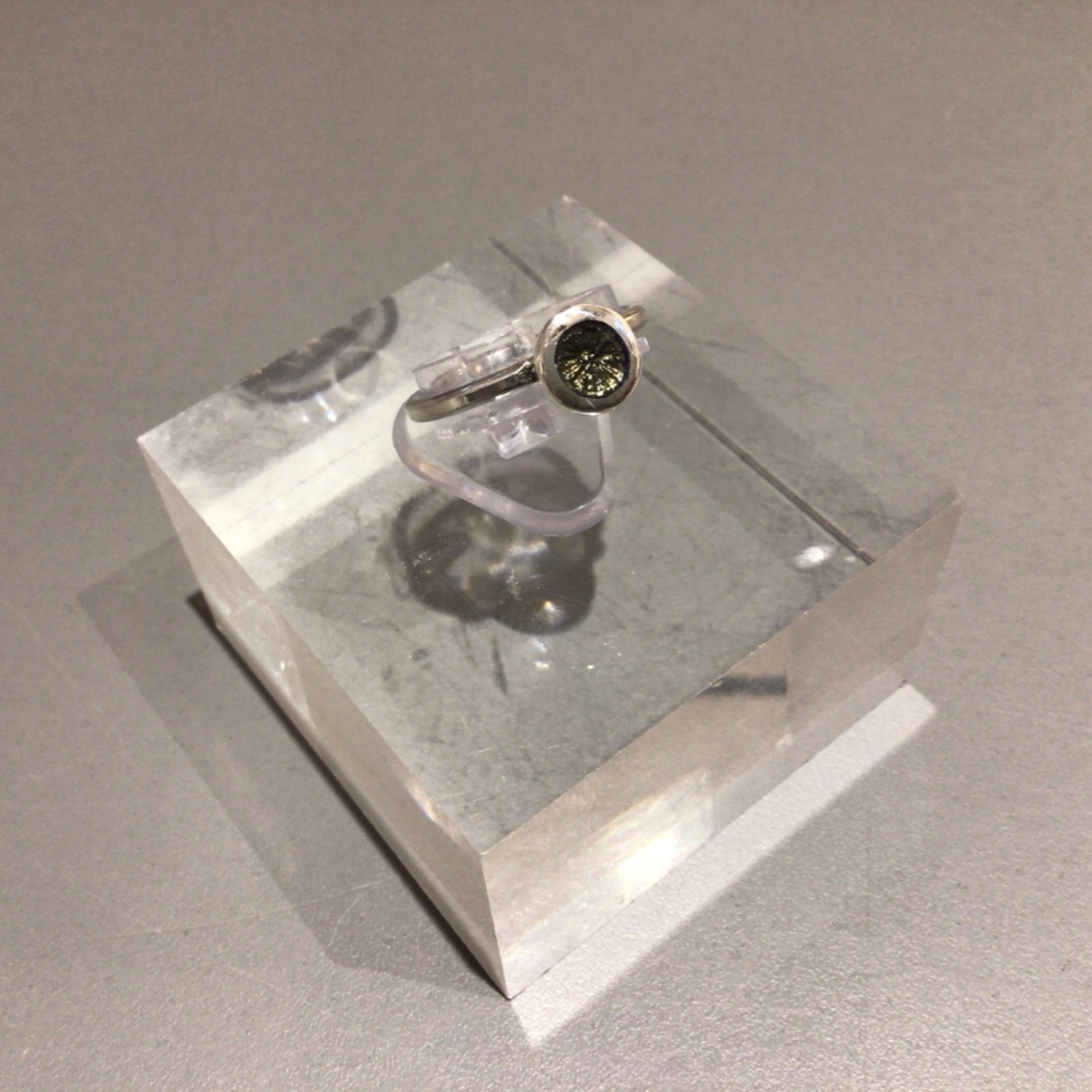 Engraved 999 silver ring with grey enamel by LasMan Jewellery.