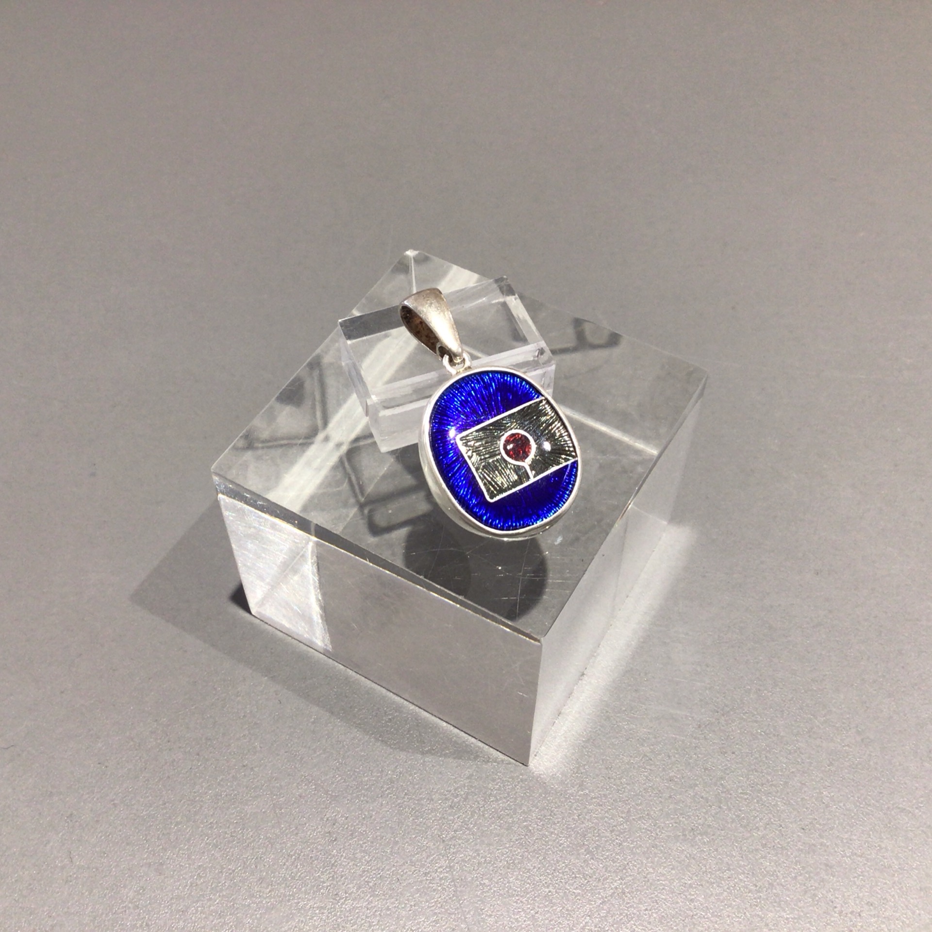 999 silver pendant with royal blue, grey and red enamel and 925 silver hardware by LasMan Jewellery.