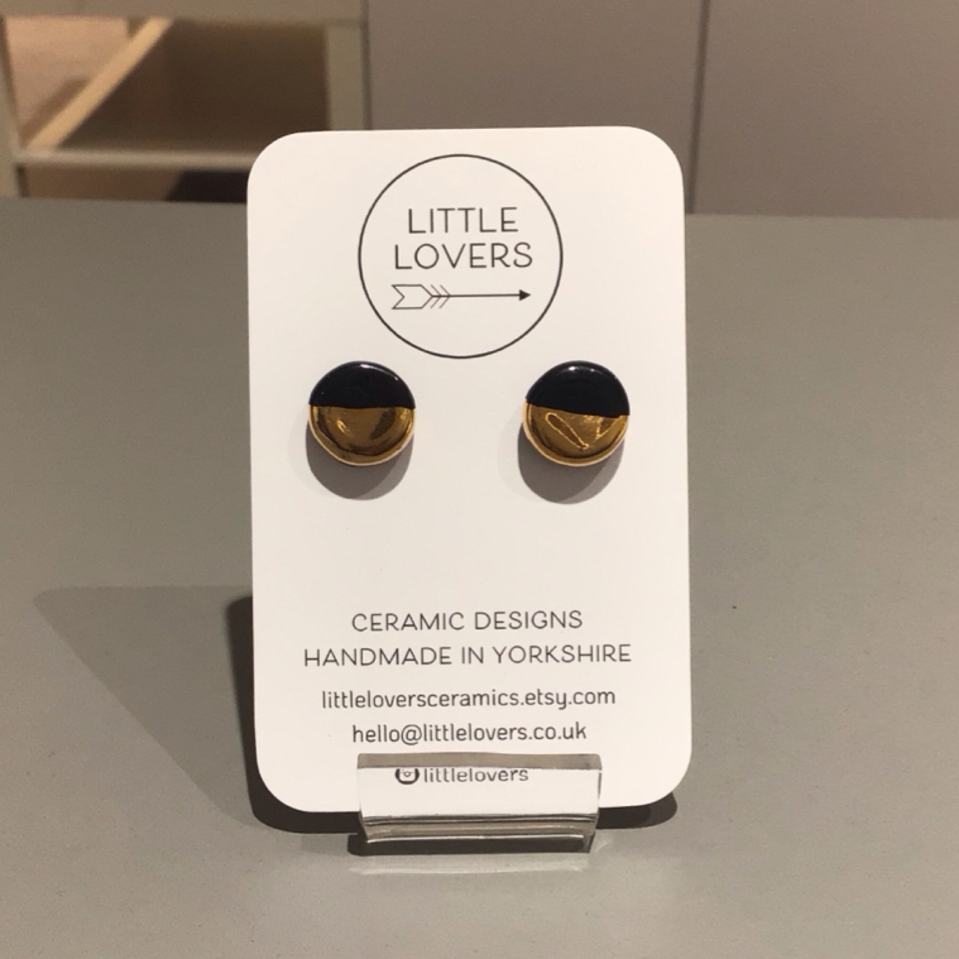 Porcelain with sterling silver posts and scroll by Little Lovers.