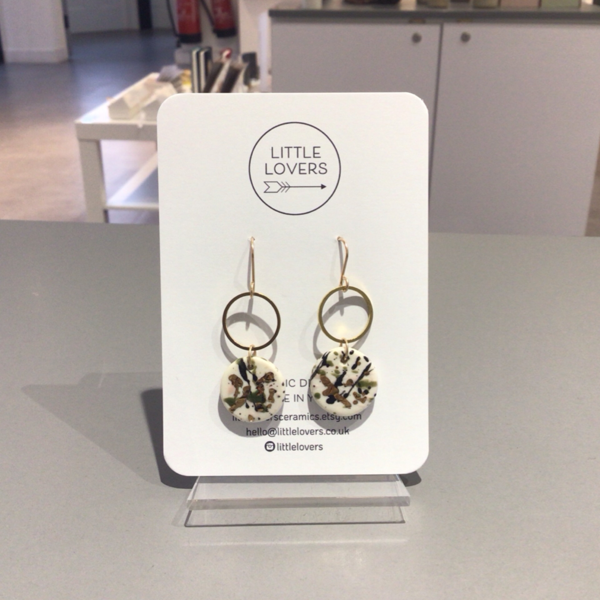 Porcelain with 14ct gold filled hooks and brass charm by Little Lovers.