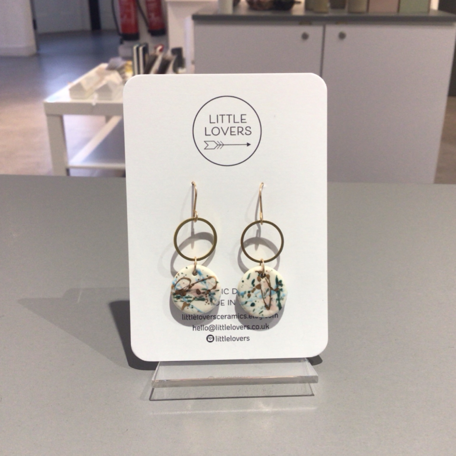 Porcelain with 14ct gold filled hooks and brass charm by Little Lovers.