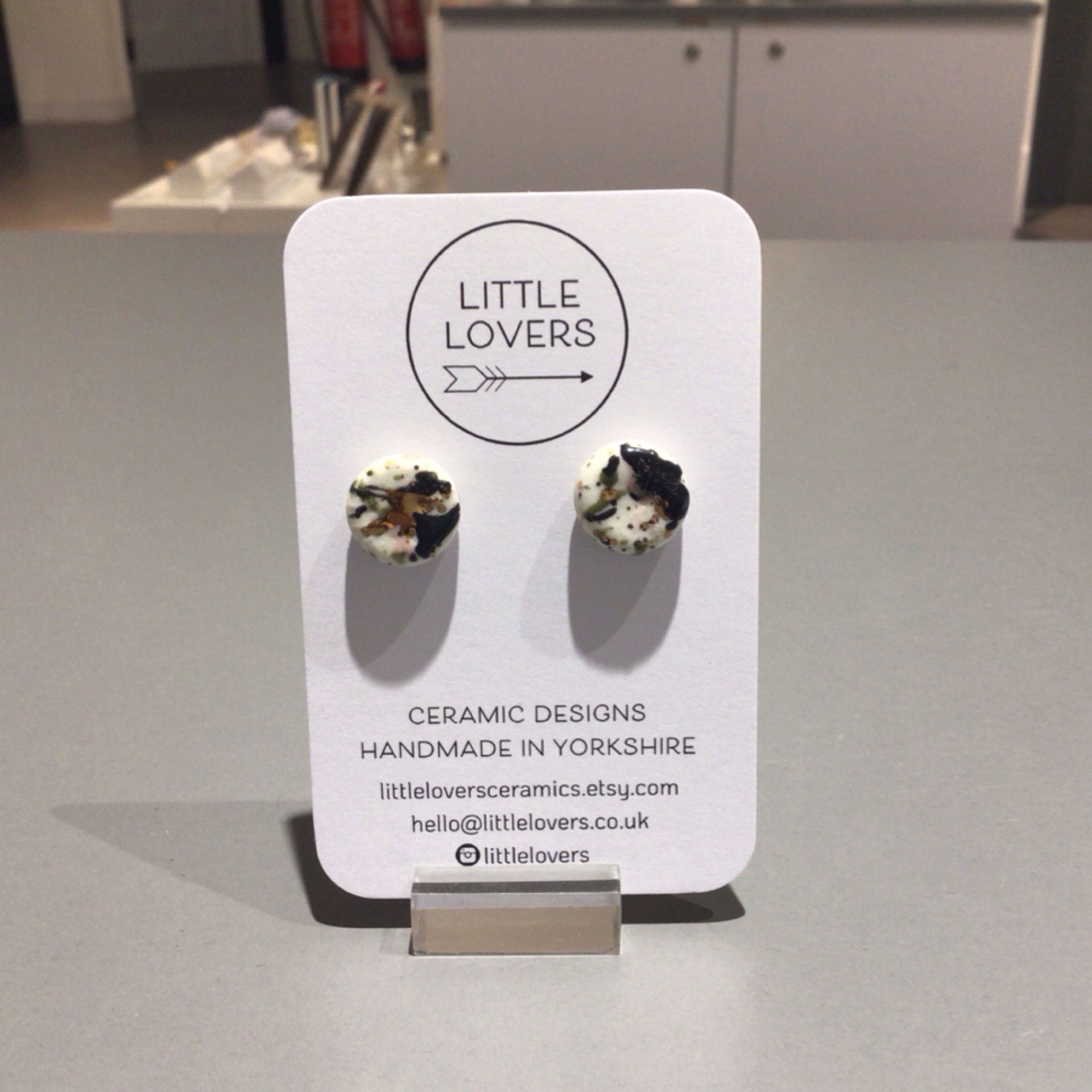 Porcelain with sterling silver posts and scroll by Little Lovers.