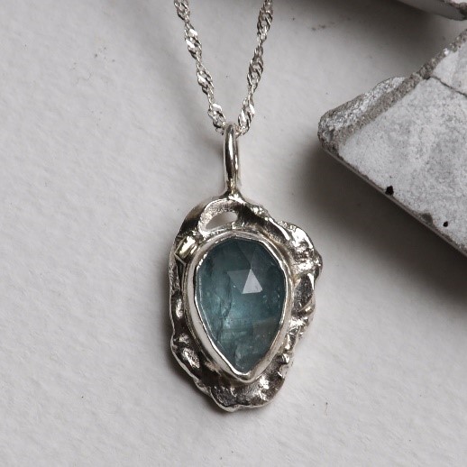 Working between her studios in Birmingham and the Worcestershire countryside, she handcrafts each piece with care, using wax carving and traditional silversmithing techniques. Her designs celebrate the raw textures of silver and the individuality of vibrant gemstones, allowing their natural character to shine.