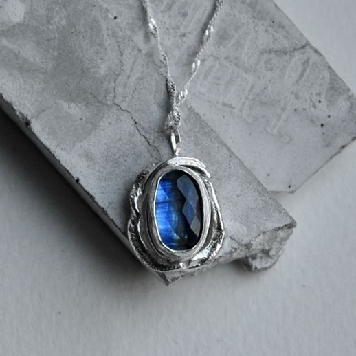 Working between her studios in Birmingham and the Worcestershire countryside, she handcrafts each piece with care, using wax carving and traditional silversmithing techniques. Her designs celebrate the raw textures of silver and the individuality of vibrant gemstones, allowing their natural character to shine.