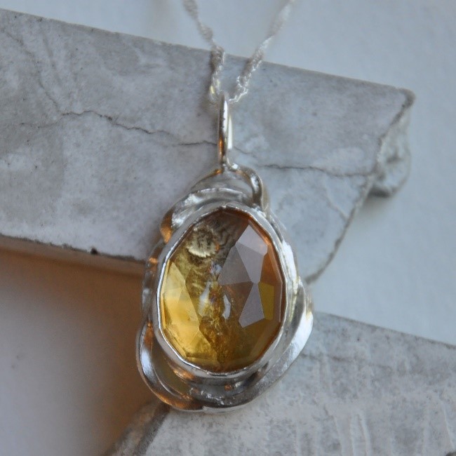 18” sterling silver chain with sterling silver citrine pendant by Nine of Hearts Jewellery.