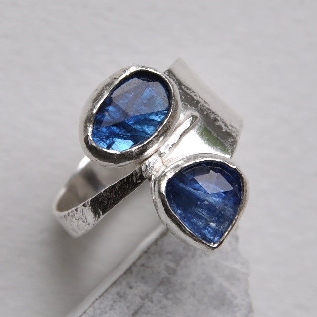 Sterling silver ring with two blue bi-colour kyanite gemstones by Nine of Hearts Jewellery.