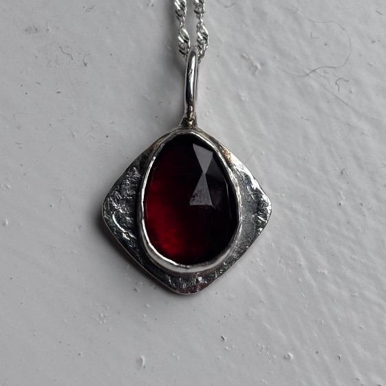 18” sterling silver chain with sterling silver garnet pendant by Nine of Hearts Jewellery.