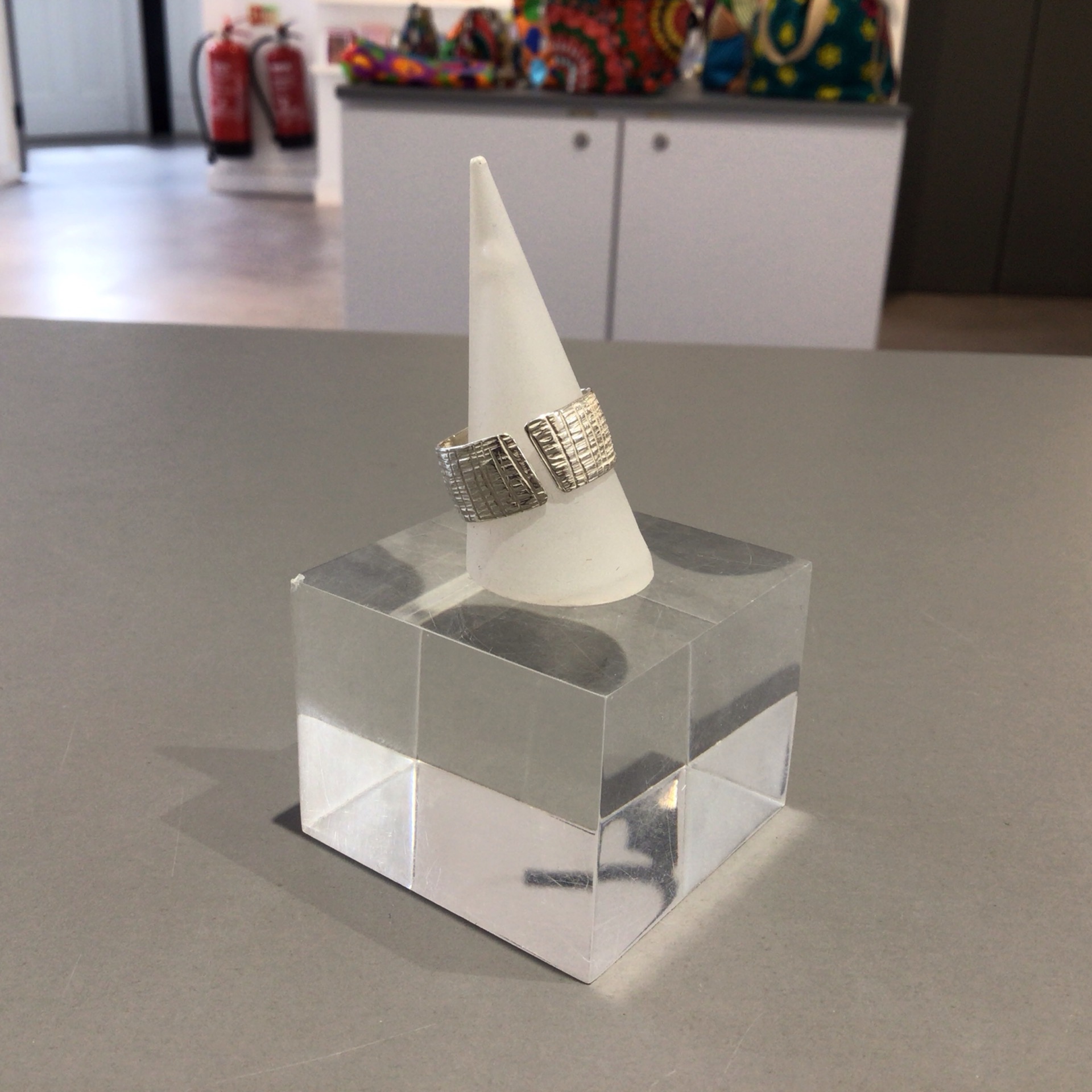 Silver cross-hatch textured open ring by solv & kopper.