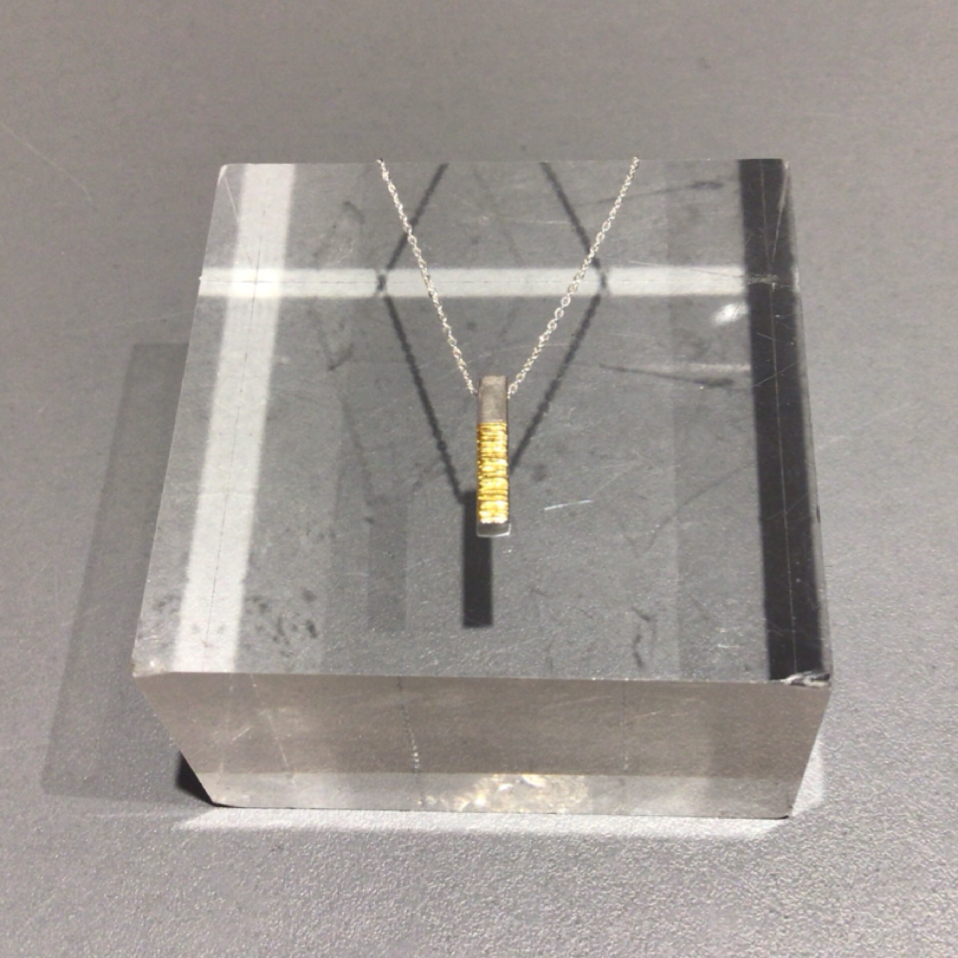 Silver Half Hammered Bar Necklace with 24ct Gold Foil Detail quantity