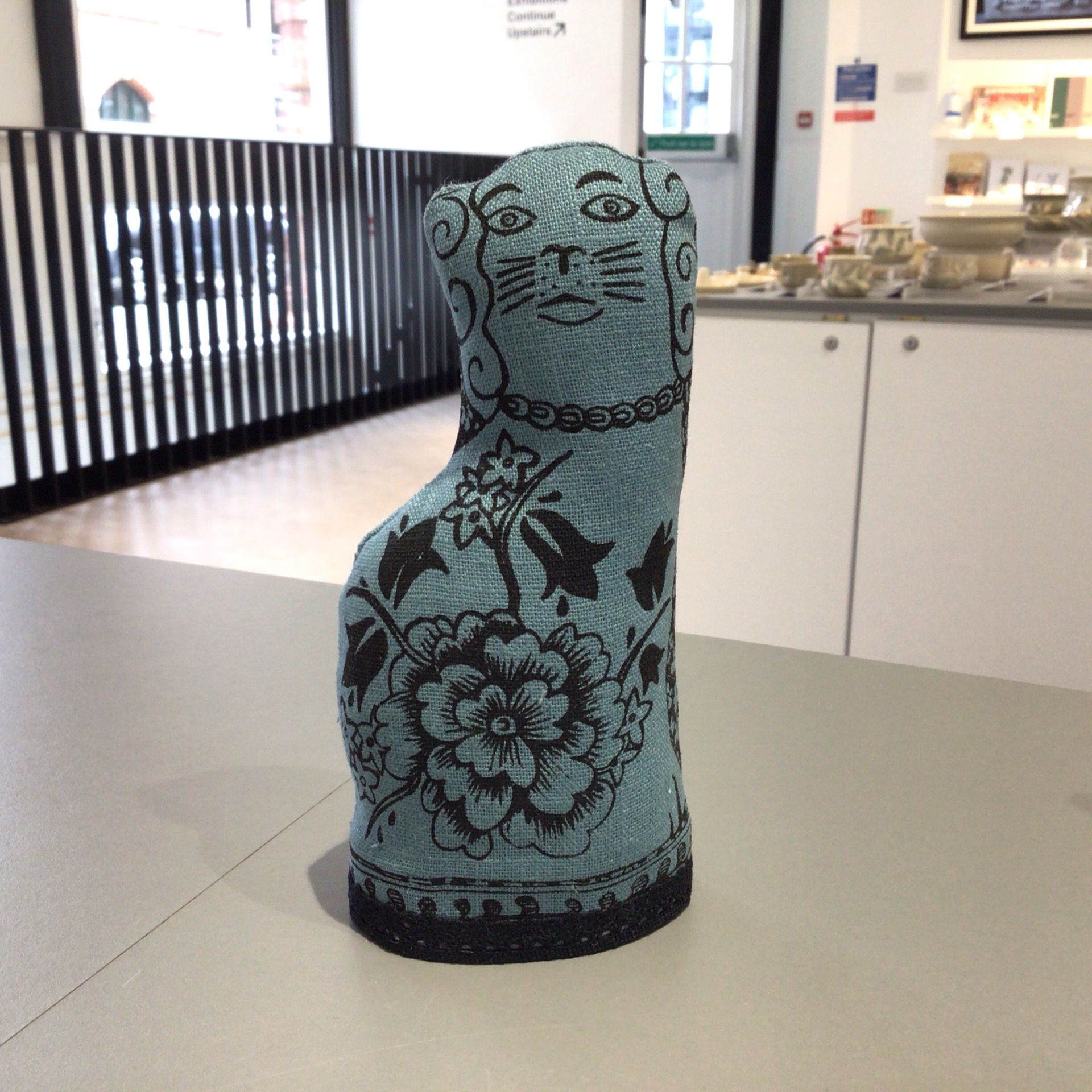Screen-printed linen Staffordshire figure by Jill Pargeter.