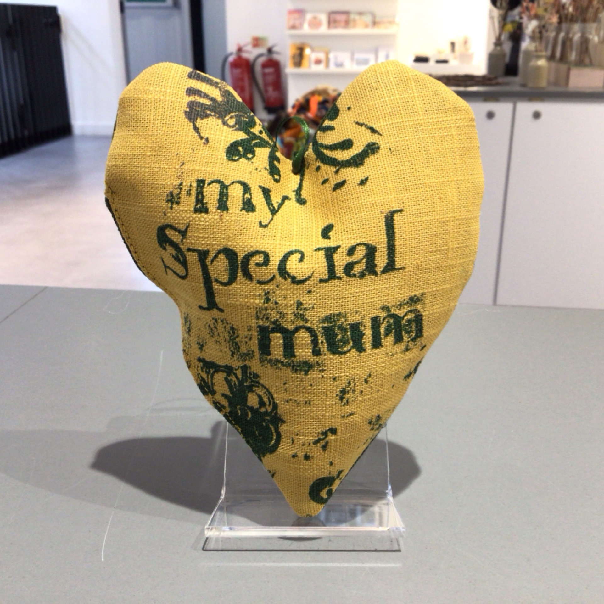 Hand-printed lavender filled heart decoration by Jill Pargeter.