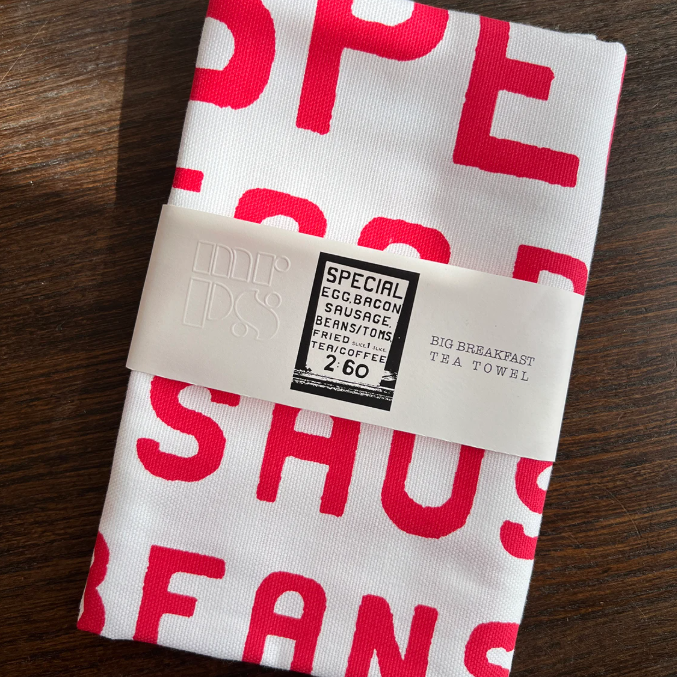 A 100% cotton tea towel screen-printed with a classic cafe menu of Big Breakfast greasy spoon cafe favourites.